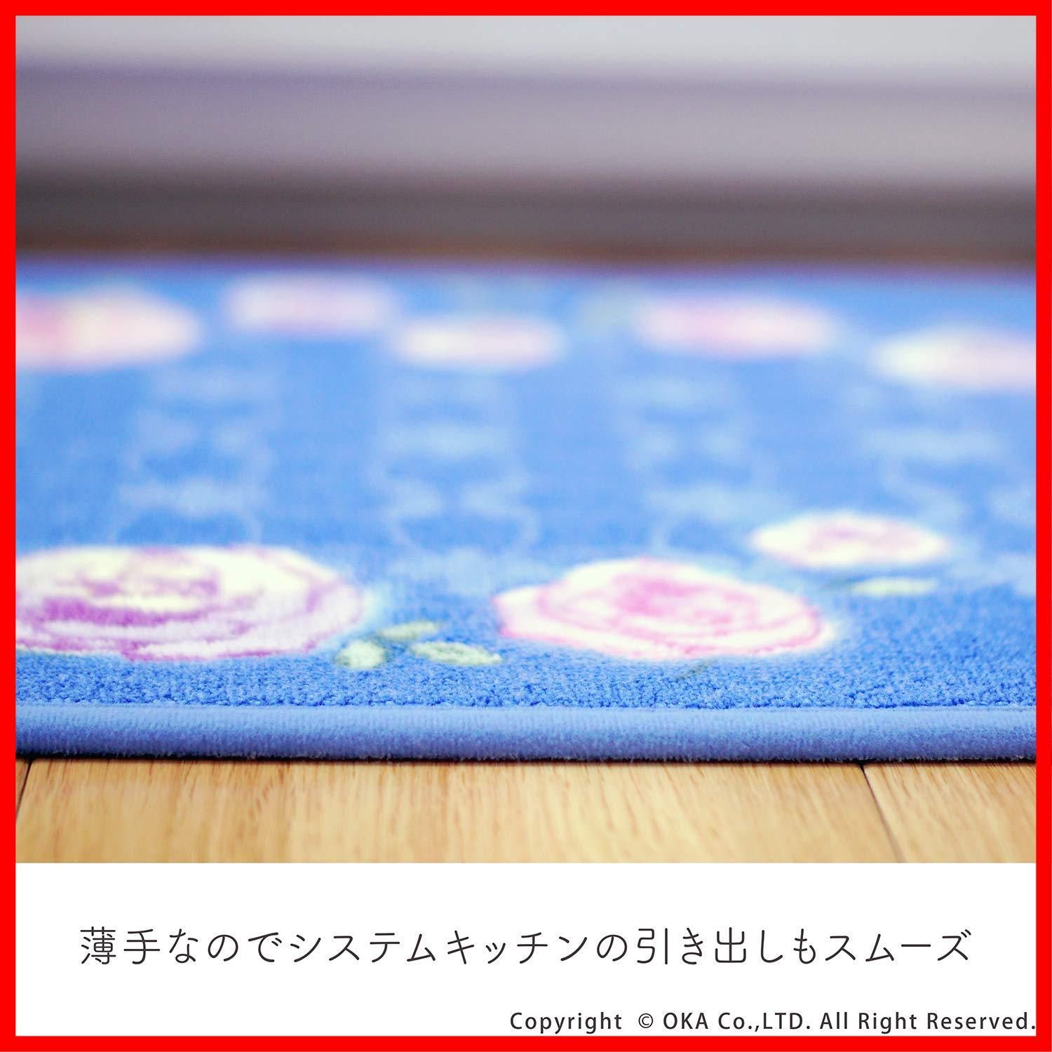 オカ(OKA) キッチンマット ブルー 約45cm×240cm ロイヤルコレクション チェルシー (バラ エレガント)