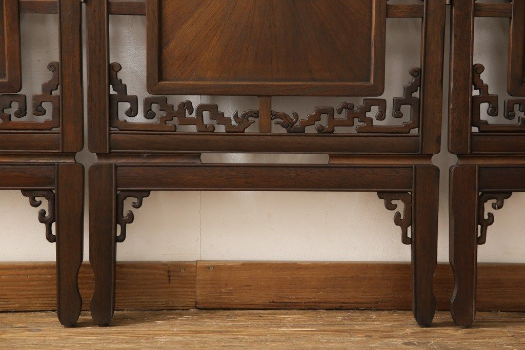 四連衝立て 和製ビンテージ 象嵌 彫刻 R 054822