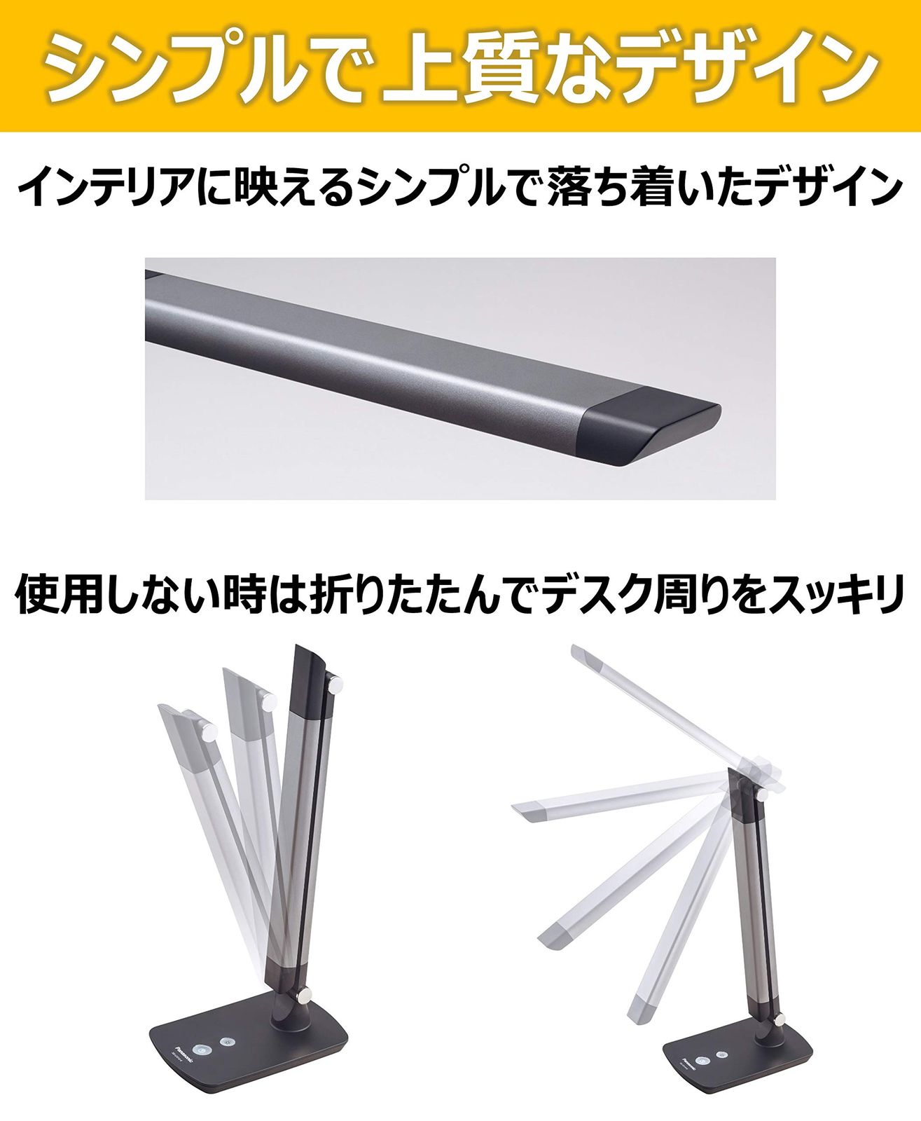 パナソニック LEDデスクライト 置き型 文字くっきり光 折り畳み可 昼光色 調光機能付 ダークグレー SQ-LD310-K
