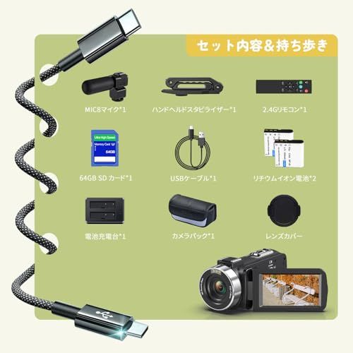 【8K解像度 ビデオと6400万画素 写真?ビデオカメラ 8K】このビデオカメラは最大8 Kのビデオ解像度と驚異的な6400万画素を提供することができる。最大270度回転する3.0インチのタッチスクリーン(16:9)を備えており、初心者にも適した簡単な操作を保証します。8K ビデオカメラは鮮明で詳細な画像をキャプチャします。付属の64 GB高速SDカードは十分なストレージスペースを提供します。最大サポートを 256 GB まで拡張できるため、ストレージを安心して利用できます。1500mAhの充電式バッテリーが2枚を搭載されているため、長時間の撮影が可能で、毎日のニーズを満たすことができます。充電しながらの録画にも対応しているので、バッテリー不足で撮影が中断されることもありません。運動会、卒業式、忘年会、イベント、旅行など場面で大活躍します! 日常生活もアウトドア旅行もスポーツも、このカメラはすばらしい瞬間を完璧に表現することができます。