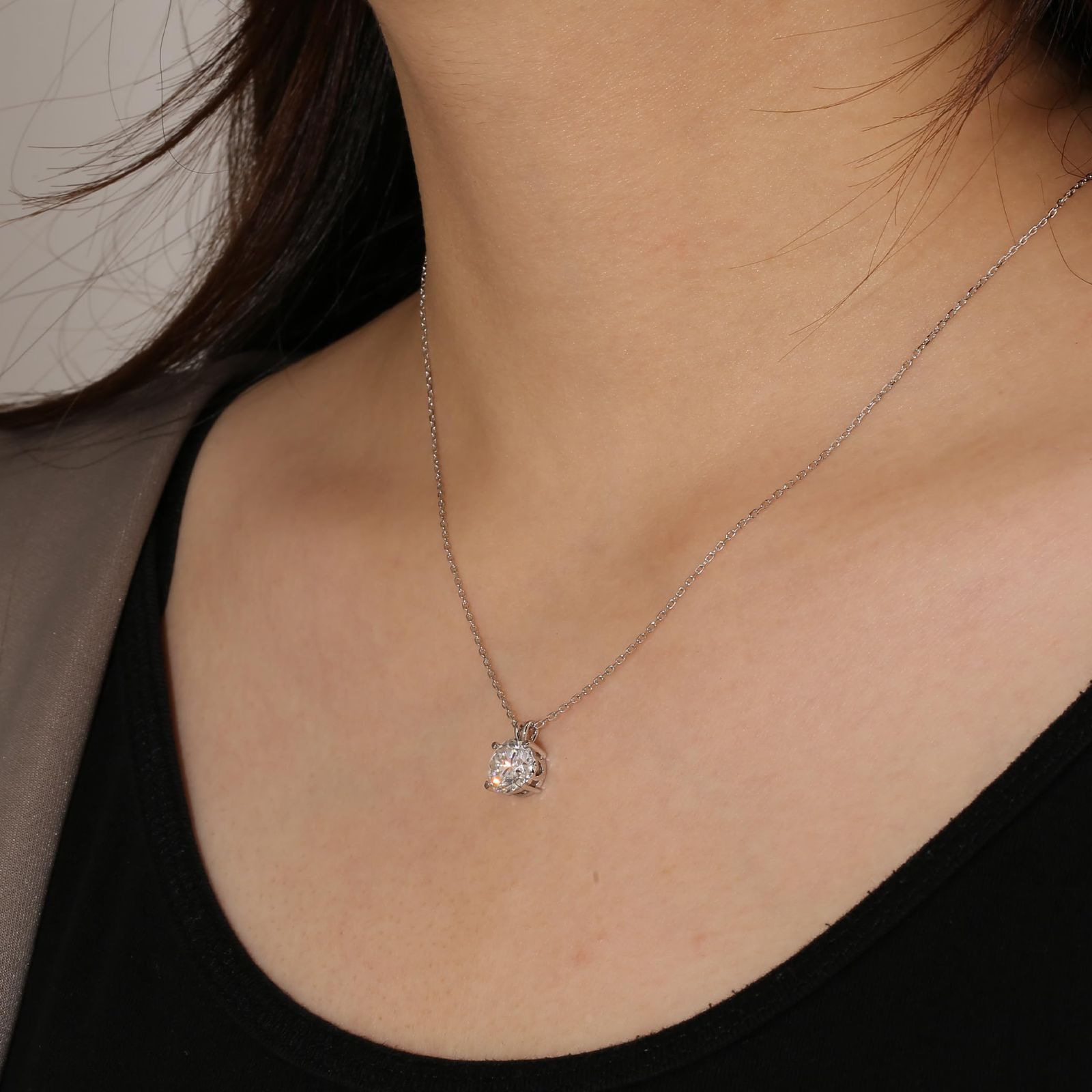【ダイヤモンドより輝く】一粒ダイヤタイプのシンプルなモアサナイトネックレス。モアッサナイトは、ダイヤモンドよりも2.5倍輝くと言われ、海外では最近人気急上昇の宝石です。KRKC&COは厳選されたH&Cカット、Dカラーの最上級ストーンを使用しており、本物のダイヤモンドに近いリアルな輝きを持ちます。