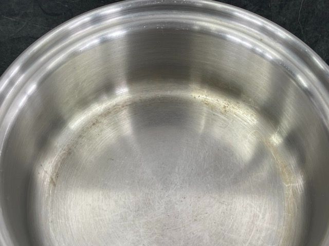 全体的に小傷や底面、蓋の裏側に焦げの跡が残っております。