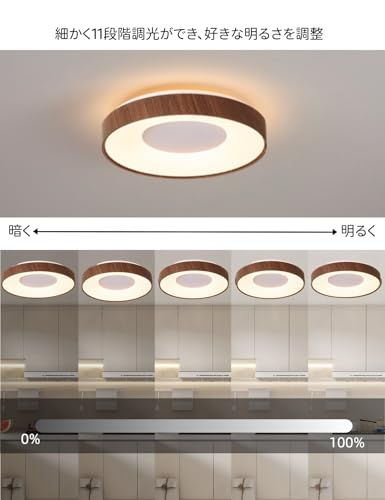 jiaiqhong 5 LEDシーリングライト6-8畳30 W 3600 lm 天井照明器具 40 CM木目調 目に優しい おしゃれ北欧 常夜灯モード上下発光 直下照明 間接光 節電対策 背面発光 11段階調光メモリ機能 15分30分スリープタイマー 45 fded 76