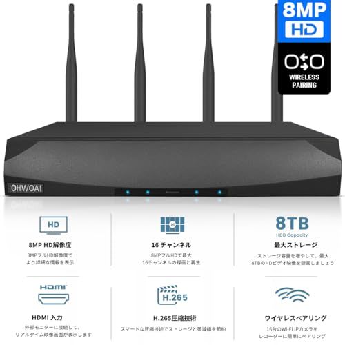 800万画素 4本アンテナ OHWOAI ワイヤレスカメラだけ適用 2448 P 800万画素防犯録画機 防犯カメラ16台まで接続 携帯遠隔監視対応 日本語システム 防犯監視 ネットワークレコーダー セキュリティー 再生録画装置 多種録画 805 ec 0 af