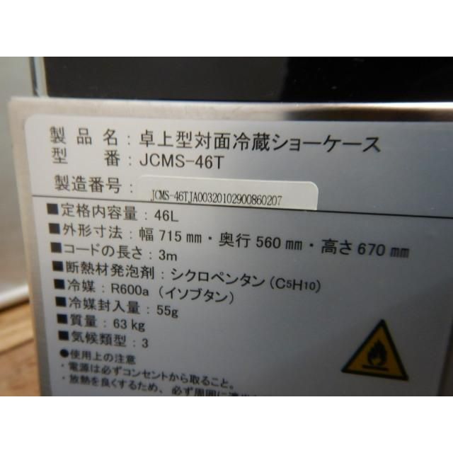 個人宛 条件付配送 2020年製 JCM JCMS 46 T LED照明付 卓上 対面 冷蔵ショーケース mm L 棚2段 63 kg ケーキ ケース