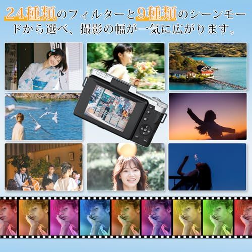 【 24種エフェクト&9種シーン編集いらずで“雰囲気写真”】 24種類のエフェクトと9種類のシーンモードを搭載。 やさしい色合い、レトロ感、旅らしい空気感などを、撮影するだけで表現できます。 難しい編集は不要。 **「その日の気持ちまで残したい」**方におすすめのカメラです。