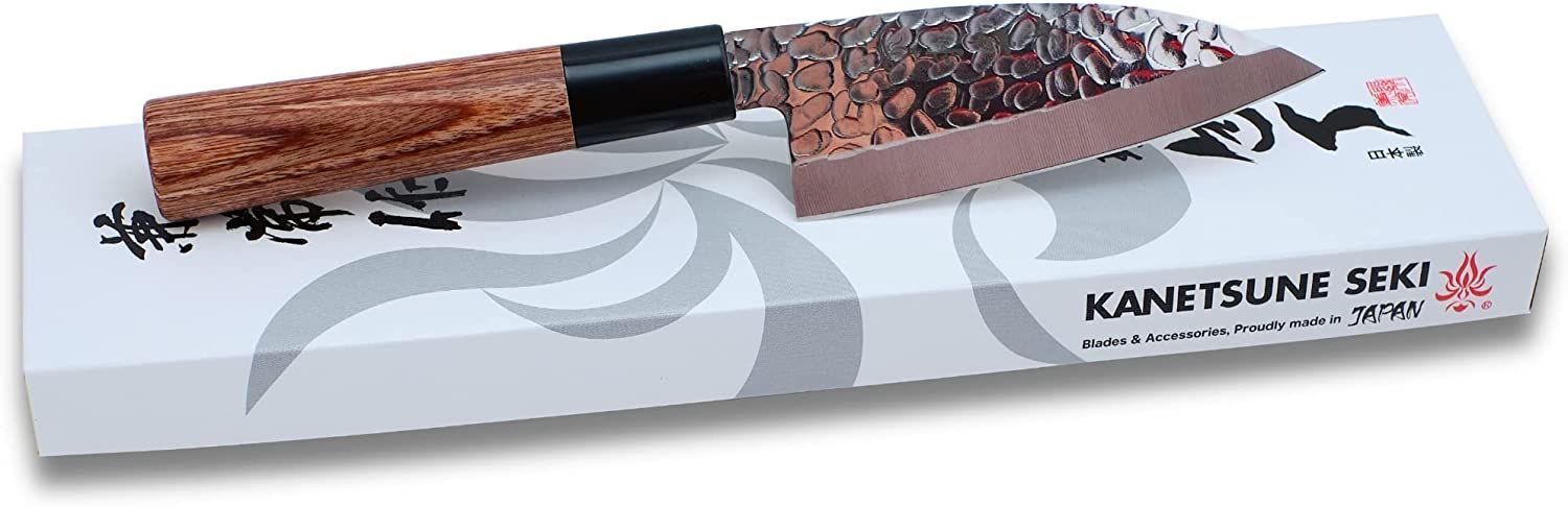 ハンドルは和式の美しい木目調の赤合板材を使用、ブレードは洋式の和洋折衷の包丁。サビにも強い、よく切れて高い定評のあるステンレス特殊鋼DSR-1K6(全ステン)を採用。槌目加工による凹凸は、風合いが美しく、食材の切り離れを助け、切れ味を助長。耐水性にも優れた赤合板丸柄は、握った感じも手に心地よく、鋭い切れ味とメンテナンスの良さを兼ね備えた包丁。信頼の兼常作。柄材 赤合板/プラスティック桂