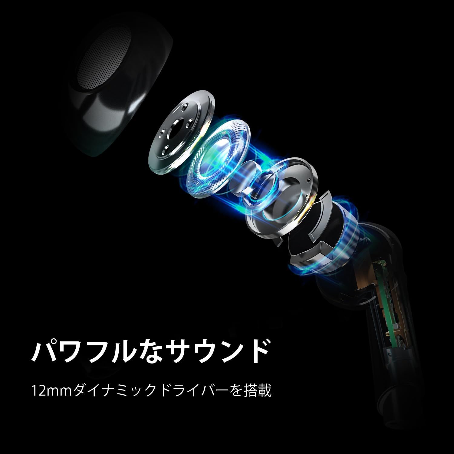 【パワフルでクリアな音質】大型の12mm径ダイナミックドライバーにより、迫力ある重低音とクリアな中高音を提供。高音域から低音域までバランスが良好、特にボーカルや楽器の音を自然でクリアにお楽しみいただけます。