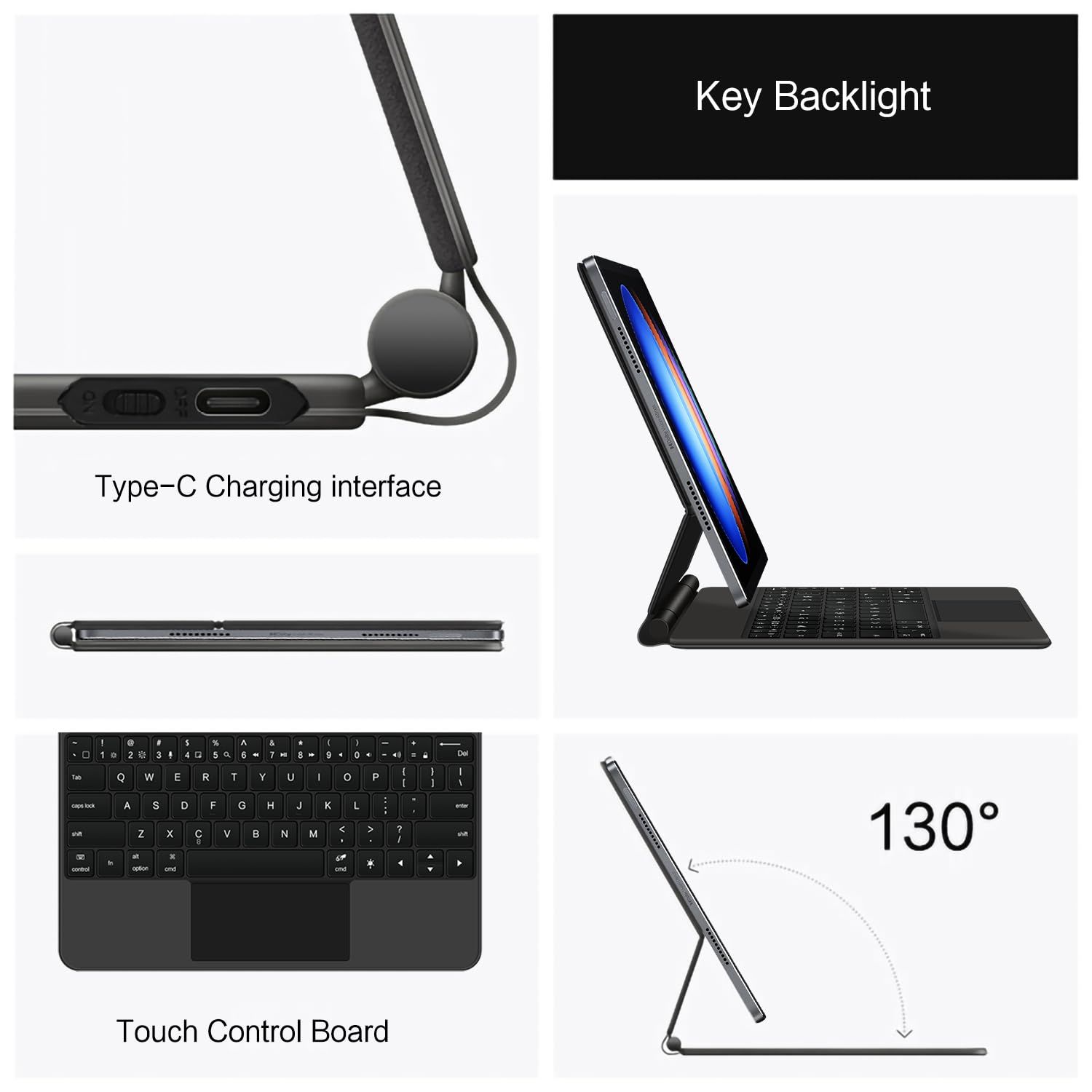 マジック キーボード Xiaomi Pad 6S Pro 12.4インチ マグネット式 タッチパッド バックライト付き 磁気吸着 シャオミ Pad 6S Pro キーボードケース バックライト付き キーボード タッチパネル搭載 マルチタッチ フローティングデザイン キーボード