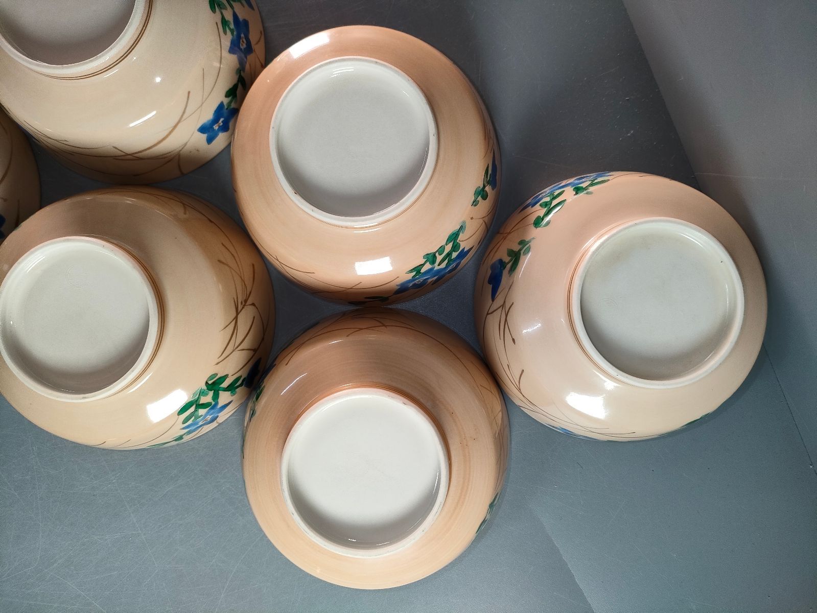 S 8 12 京焼 清水焼 平安橘吉 着彩草花文絵蓋向付 茶碗10客 蓋9客 懐石道具