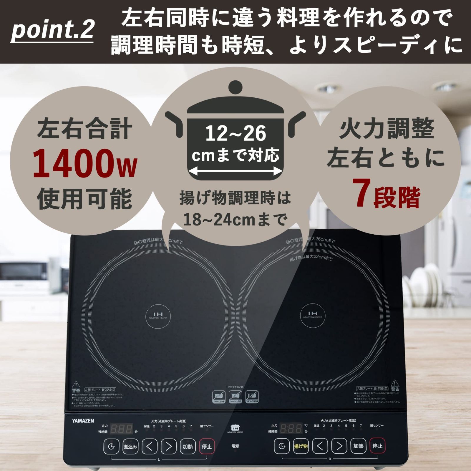 数量 静音設計 煮込みモード搭載 ブラック 揚げ物対応 タイマー機能 幅56 cmタイプ 工事不要 IH調理器 脚付き 二人暮らし YES WL 1456 B 一人暮らし 1400 W IHクッキングヒーター IHコンロ 2口 山善