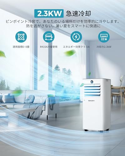 【パワフル冷風、真夏でも快適に!】2.3KWの強力冷房機能で、猛暑の室内も一気に冷却でき、うだるような暑さも一気にシャットアウト!エアコンと同等のしっかり冷える冷風で、お部屋全体をひんやり快適に保ちます。冷風が部屋のすみずみまで行き届き、木造6畳、鉄筋8畳までしっかりカバー。気温は16℃?32℃の間で自由に調整可能。あなたの「ちょうどいい」を叶えます。暑さに負けたくないあなたへ??今年の夏は、この一台で「快適」を手に入れよう。
