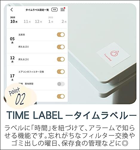 【寸法】約55(W)×133(D)×144(H)㎜【質量】約470g(電池、テープ除く)【電源】2way電源[ACアダプタ(別売)、単3形アルカリ乾電池×6本(別売)または単3形充電式ニッケル水素電池×6本(別売)] 専用アプリには豊富なテンプレートを搭載。 印字速度(最大):12mm/秒