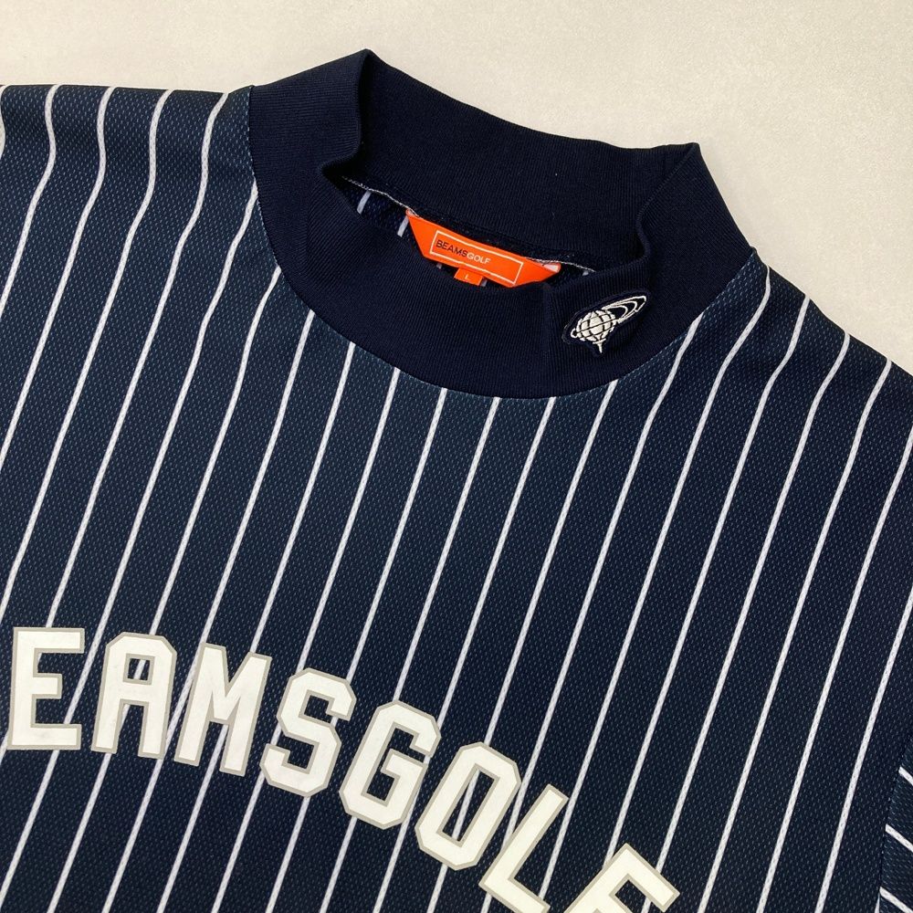 サイズ L BEAMS GOLF ビームスゴルフ モデル ハイネック 半袖Tシャツ ストライプ柄 ネイビー系 ゴルフウェア メンズ ストスト