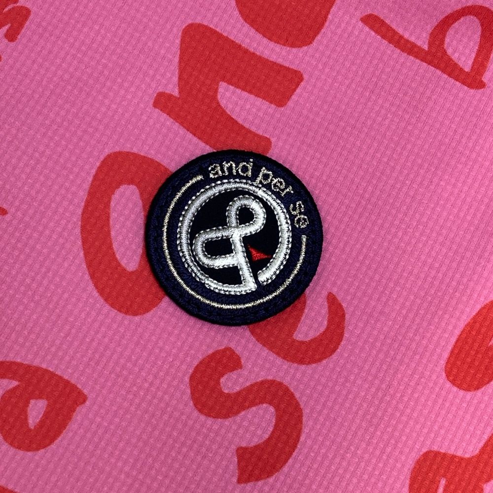 サイズ LL AND PER SE アンパスィ モデル 半袖ポロシャツ 総柄 ピンク系 ゴルフウェア レディース ストスト