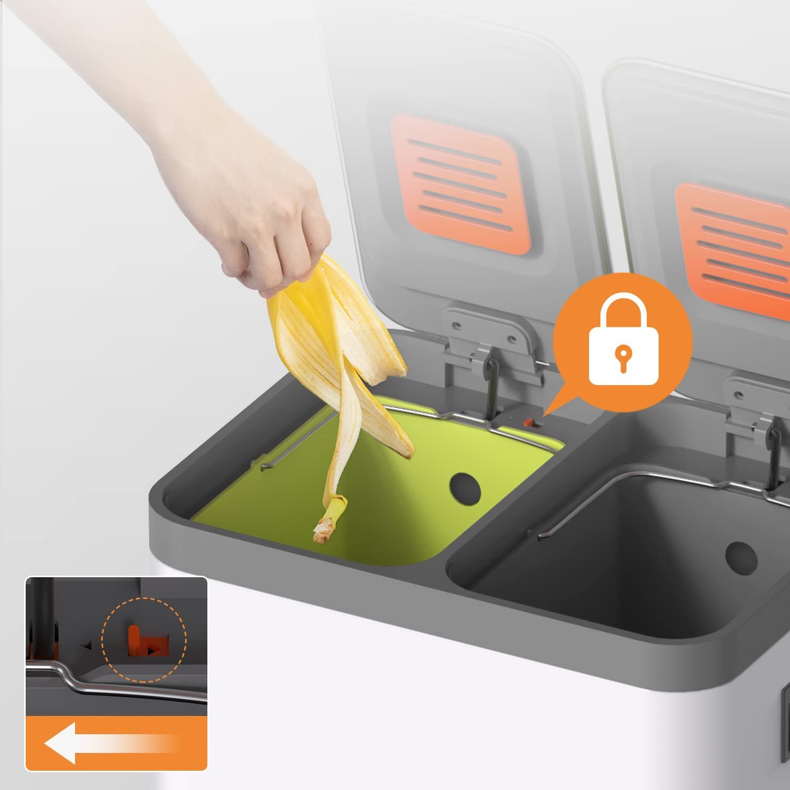 フタ付きゴミ箱 分別 2段 おしゃれ ごみ箱 ステンレス ゴミ箱 ペダル式 キッチン ゴミ箱 消臭 ダストボックス 2×15L 大容量 長方形 生ごみ ゴミ箱 インナーバケット2つ 密閉 音無し 室内 オフィス ベランダ (白 15+15L)