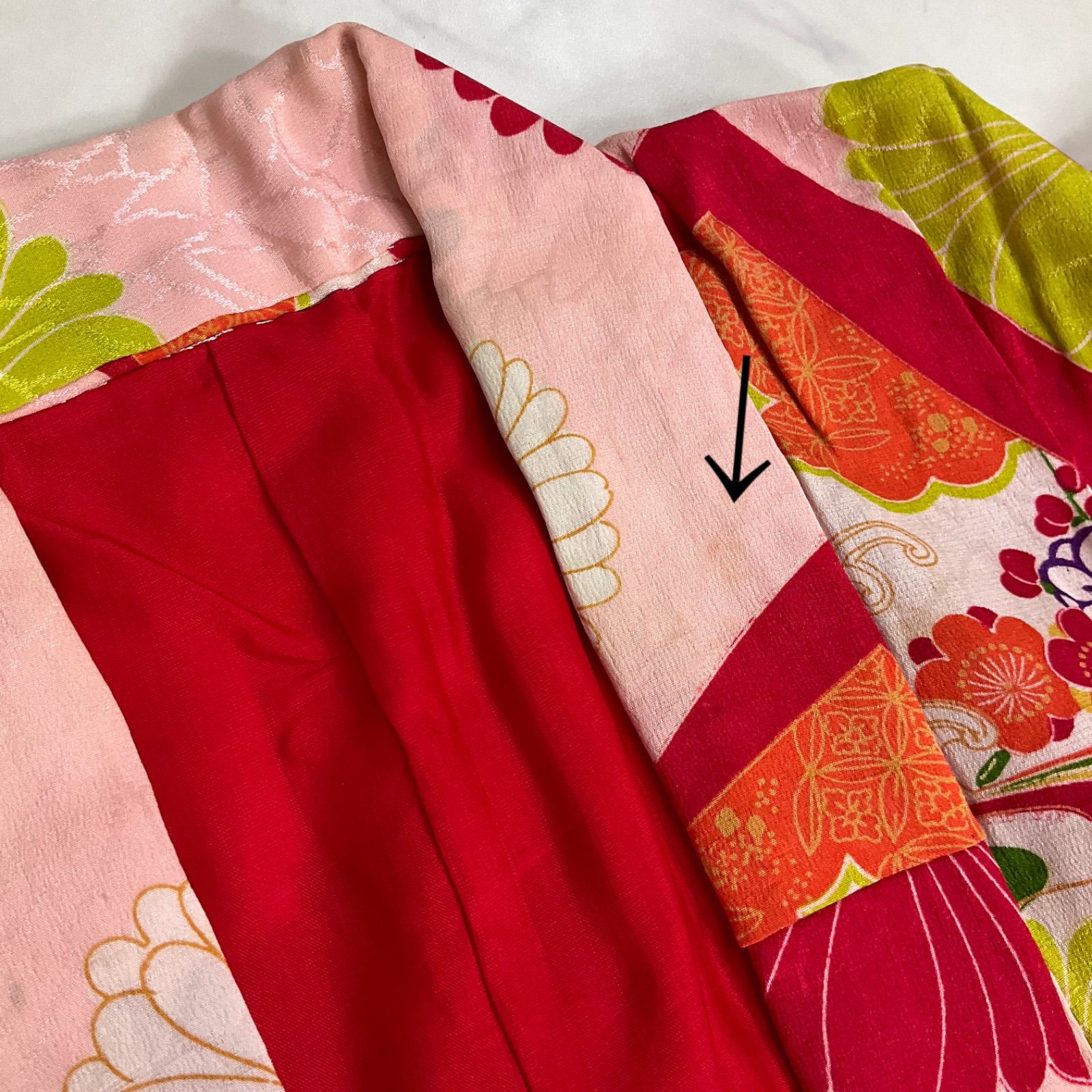 kimono one 7歳くらい用 アンティーク子供着物 綸子正絹 七五三 裄55 5肩丈144 七五三お詣り女の子着物こどものひお正月卒業式十三詣り G 312