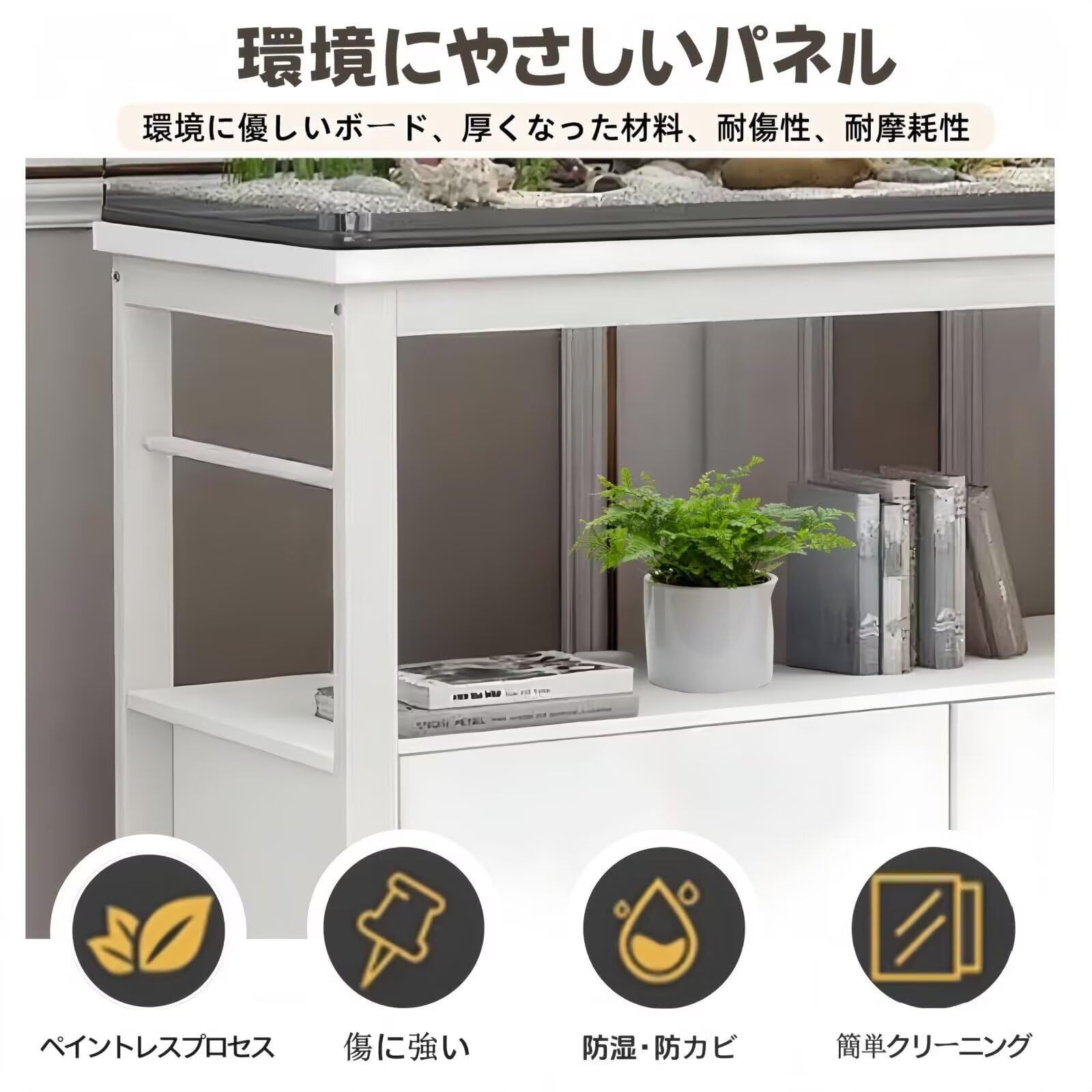 ??【様々なご用途】この水槽台広い天板を装備、収納はたっぷりあるのできます。水槽の収納はもちろん、オフィス、書斎、寝室、キッチンやリビングなどで生活用品や事務用品を収納こともできます。様々な場所で活躍!