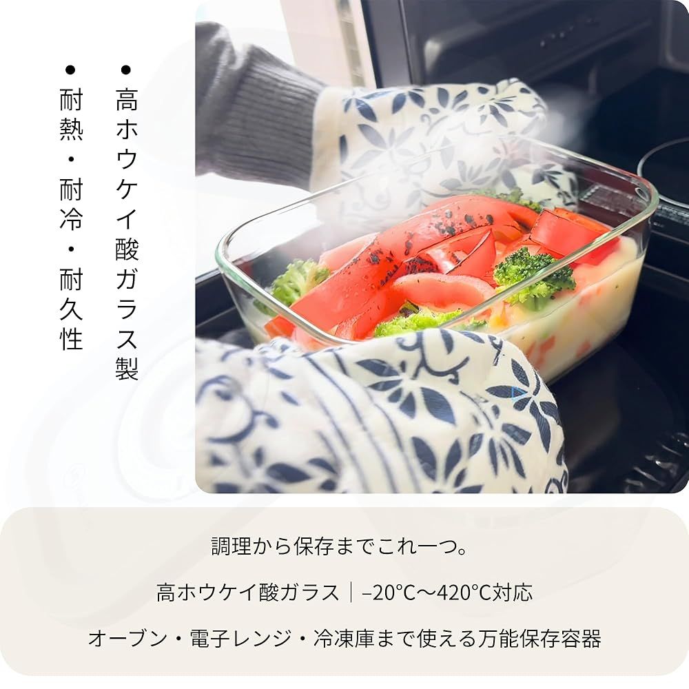 【耐熱性に優れたガラス製】高ホウケイ酸ガラス使用で、電子レンジ・オーブン・冷凍・食洗機すべて対応。