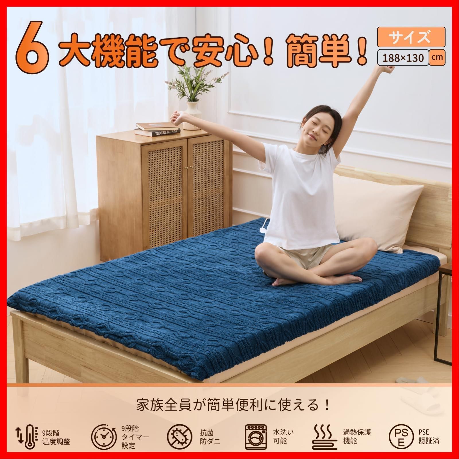 防寒対策 ダニ退治 丸洗い 均一加熱 過熱保護 自動電源切れ 九階段温度調節 九階段タイマー機能付き PSE承認済み 電気ブランケット 電気毛布敷き 電気ひざ掛け ダークブルー 電気毛布キャンプ 掛け敷き兼用 188 130 cm Ash