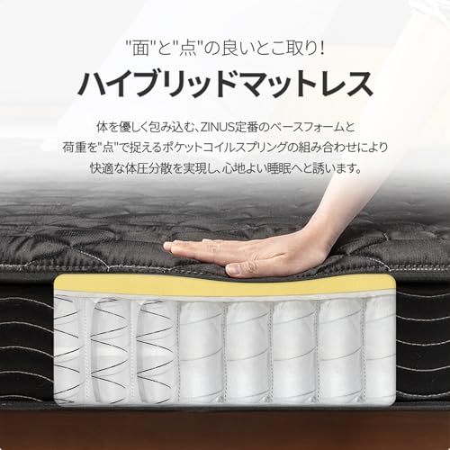 ZINUS BASIC マットレス ポケットコイル 20 cm ブラック セミダブル コイル数 体圧分散 やや硬め 高耐久 圧縮梱包 ベッド ジヌス 日本 BASICP 8 p deffc 832