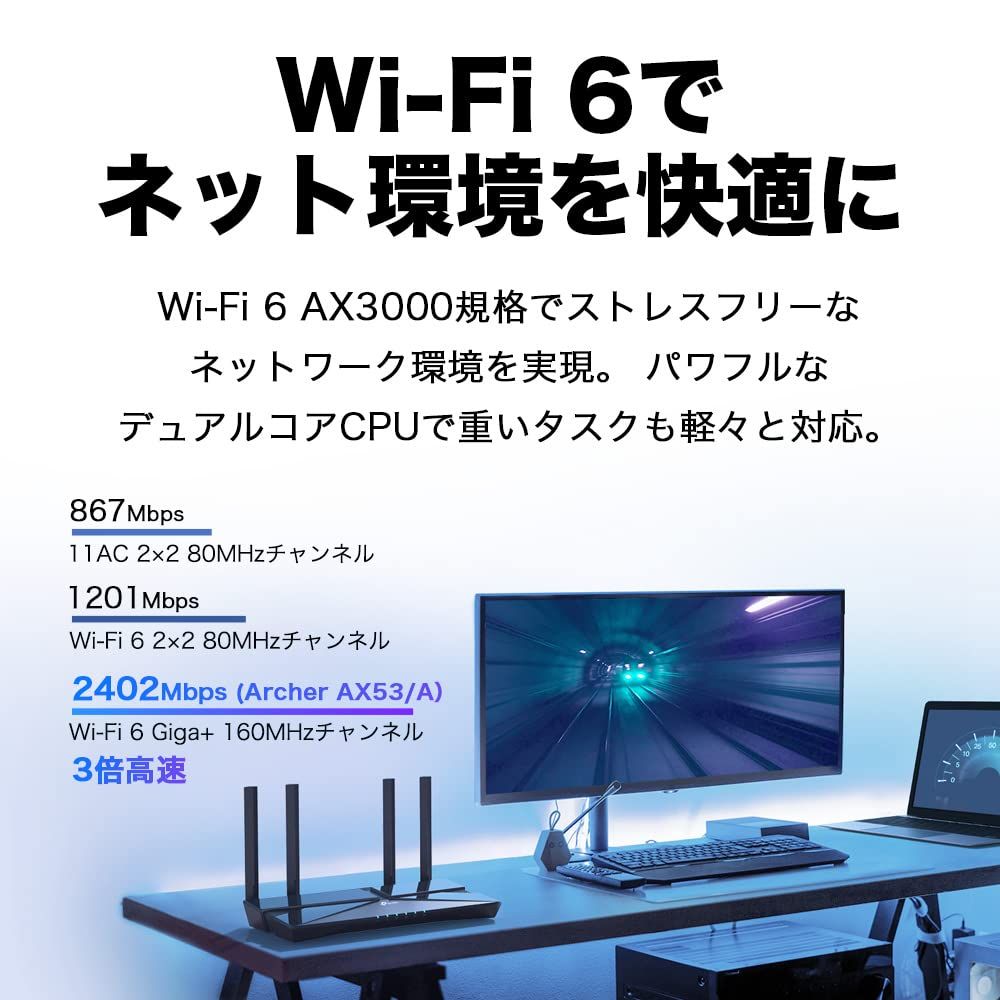 TP-Link WiFi ルーター Archer AX53/A 4LDK 3階建向け 11ax AX3000 WiFi6 無線LAN 2402 + 574Mbps【PS5 / iPhone 13 / Nintendo Switch メーカー動作確認済み】