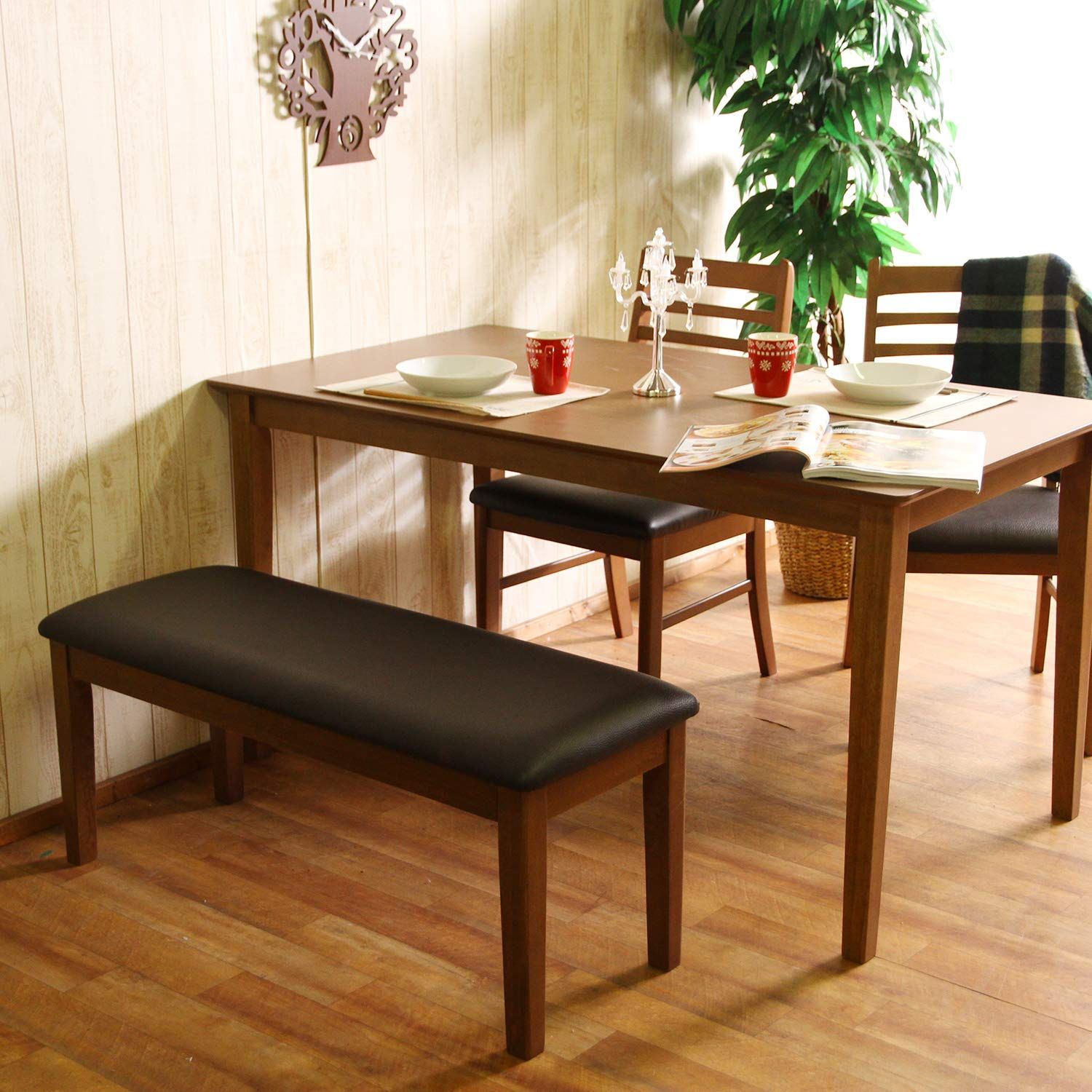 北欧風にピッタリなダイニングベンチです。座面はPVC素材を使用しており、汚れてもお手入れが簡単にできます。シンプルなデザインで、他の家具に合わせやすくなっています。暖かみのある天然木は使うほど味わいが出てきますので、日に日に愛着が出てきます。落ち着いた色味でどんな部屋にもマッチします。