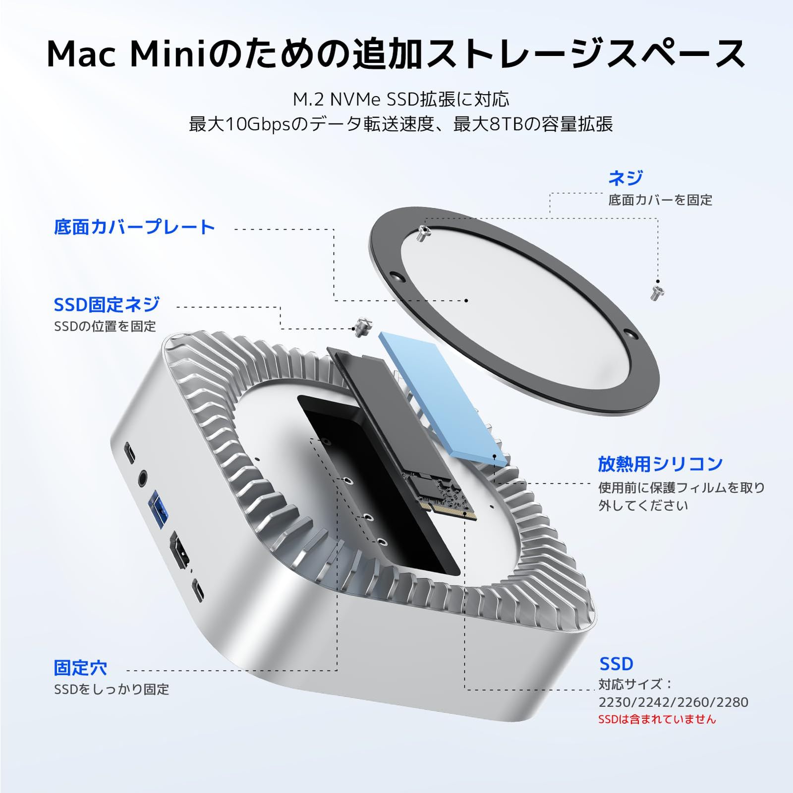 新モデル Mac Mini M 4 対応ハブ 高精細UI RayCue USB Cハブ 10 in 1 NVMe SSD拡張機能搭載 HDMI K 60 Hz Cデータポート Micro SDカードスロット A 5 Gbps
