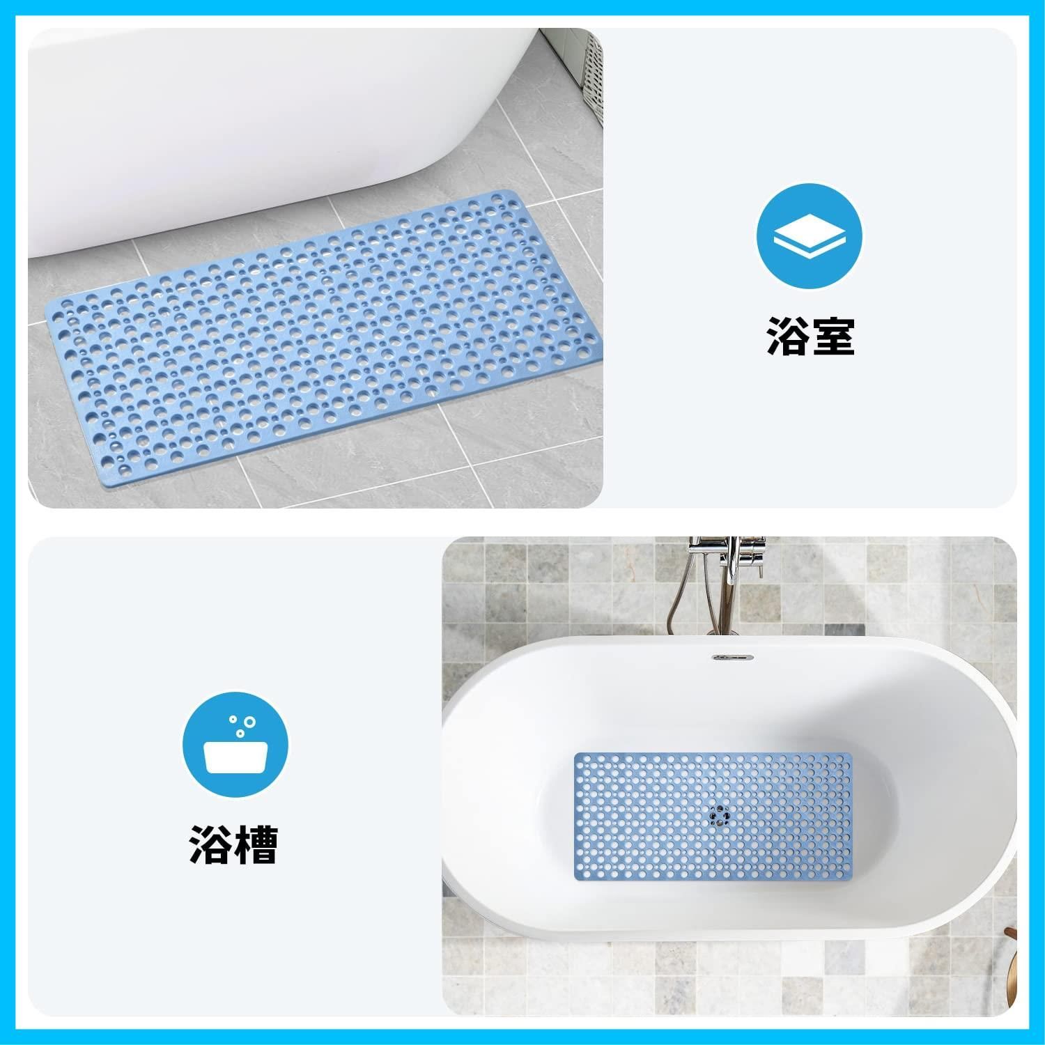 【特大風呂マット 】カラー:ブルー、サイズ:40x88cm。浴槽の縁、床の滑り止めとして使用できます。TPE生地が含まれ、軽くて柔らかくて、人間と環境にも優しいです。乗り心地が快適です。