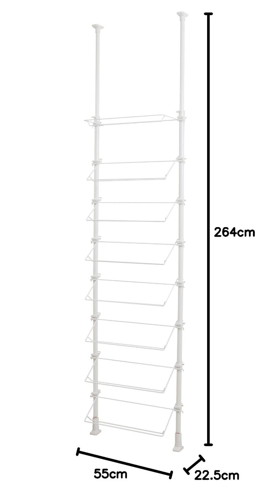 数量 HEIAN SHINDO 突っ張りシューズラック 16足対応 ワイヤー1本棚タイプ ホワイト 幅55 cm高さ190~264 cm TSR