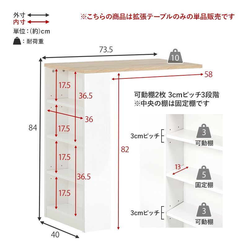 テーブル 幅73 5 cm 拡張テーブル キッチン 台所 カウンター キッチン収納 食器棚 キッチンラック ラック 棚 キャビネット 奥行40 高さ84 RCC 1636 1638対応 RT 1639 OA