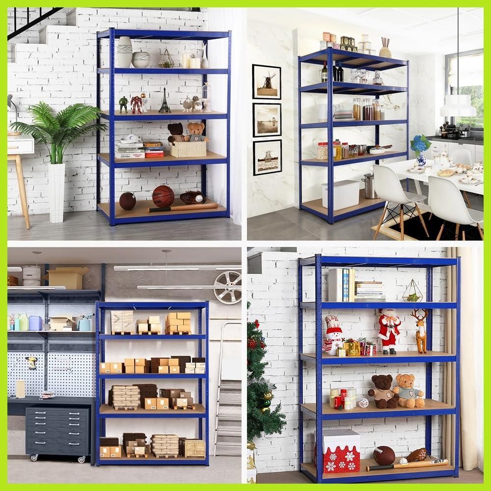 Yaheetech メタルラック スチールラック 5段 120×60×180cm キッチンラック ステンレスラック オープンシェルフ 幅120 耐荷重875kg 収納棚 収納ラック 業務用 高さ調整可 自由に組み合わせ 防サビ加工 組立簡単 手袋付き ゴム製キャップ付き 大容量 キッチン 物置 倉庫 ガレージ (ブルー 青)