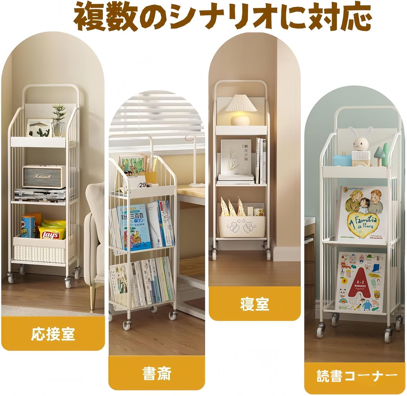 書類カート 本棚 キャスター付き A 4対応 書類収納 ファイル収納 大容量 仕切付き 取り出しやすい 3段 スチール製 ファイルワゴン コンパクト 日本語説明書付き ファイルラック ホワイト 幅36 8 奥行27 3 高さ111 7 cm