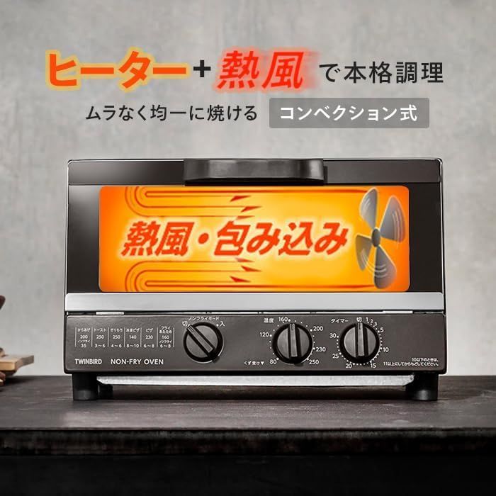 ツインバード トースター オーブントースター ノンフライヤー コンベクション 焼き 温度調整機能搭載 30分タイマー お手入れ簡単 ブラウン TS 4054 BR