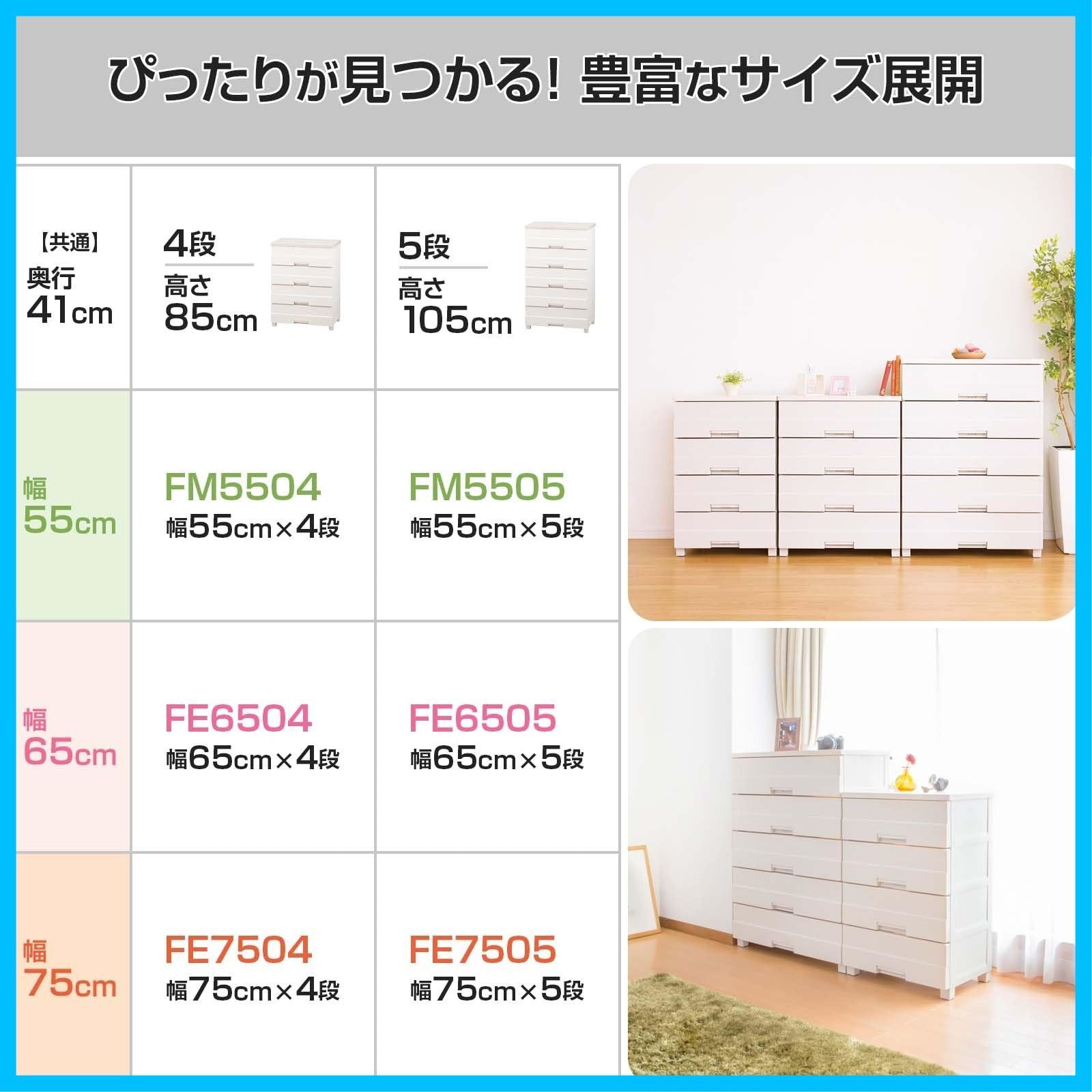 サイズ カプチーノ 色 組立不要 プラスチック 衣装ケース FE 6505 収納ケース タンス インテリアに合うリビングチェスト 木製天板 脚付き スムーズな引出し 引出しロック付きで抜け落ちを防ぐ 幅65 奥行41 高さ105 cm 特許取得済