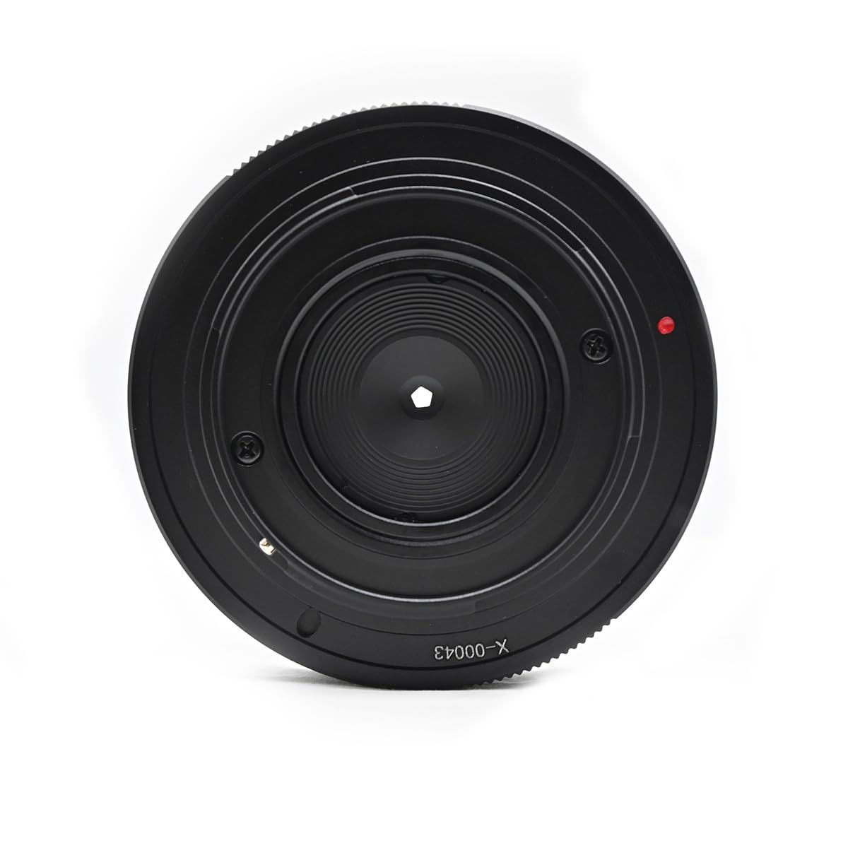 パンケーキサイズで重量は約100g台、厚さ約12mm。コンパクトとメタルボディは耐久性と携帯性の完璧な組み合わせです。レンズ構成は4群5枚、その中に3枚のEDレンズが含まれています。