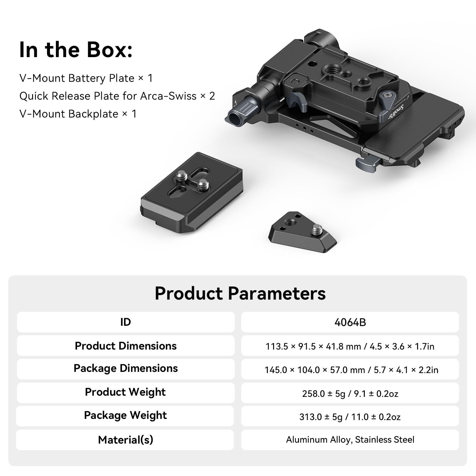 SmallRig V マウント バッテリー プレート V ロック 、クイック リリース プレート付き Arca-Swiss 用 1/4-20 スレッド L 型コンパクト DSLR カメラ対応 ジンバル用 三脚用 4064B