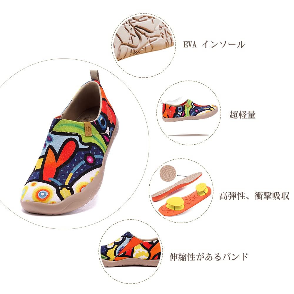 【ユニークなアートデザイン】UINはスペインのデザインブランドです。一般的靴モデルにうんざりしているならば、UINローファースリッポンはお客様が探しているファションスリッポンです。UINのローファースリッポンはシューズだけでなく、創造性と情熱の特徴です。UINシューズを履いてください、楽しましょう~