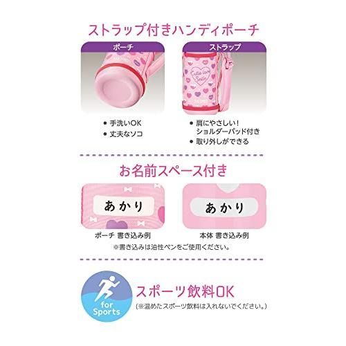 ●スポーツタイプとコップタイプの2ウェイボトル ●飲み口をくわえてもゴクゴク飲めるスポーツ飲み口 ●押しやすい大きなボタンで開けやすく、シンプル構造で洗いやすいフルオープン中せん ●肩にやさしいショルダーパッド ●丈夫なソコ ●ポーチとボトルにお名前スペース付き