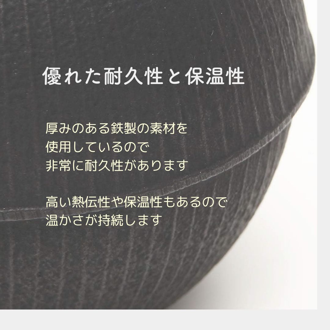 なります。南部鉄瓶はその均一した厚みより優れた熱伝導力と保温力をもちます。
