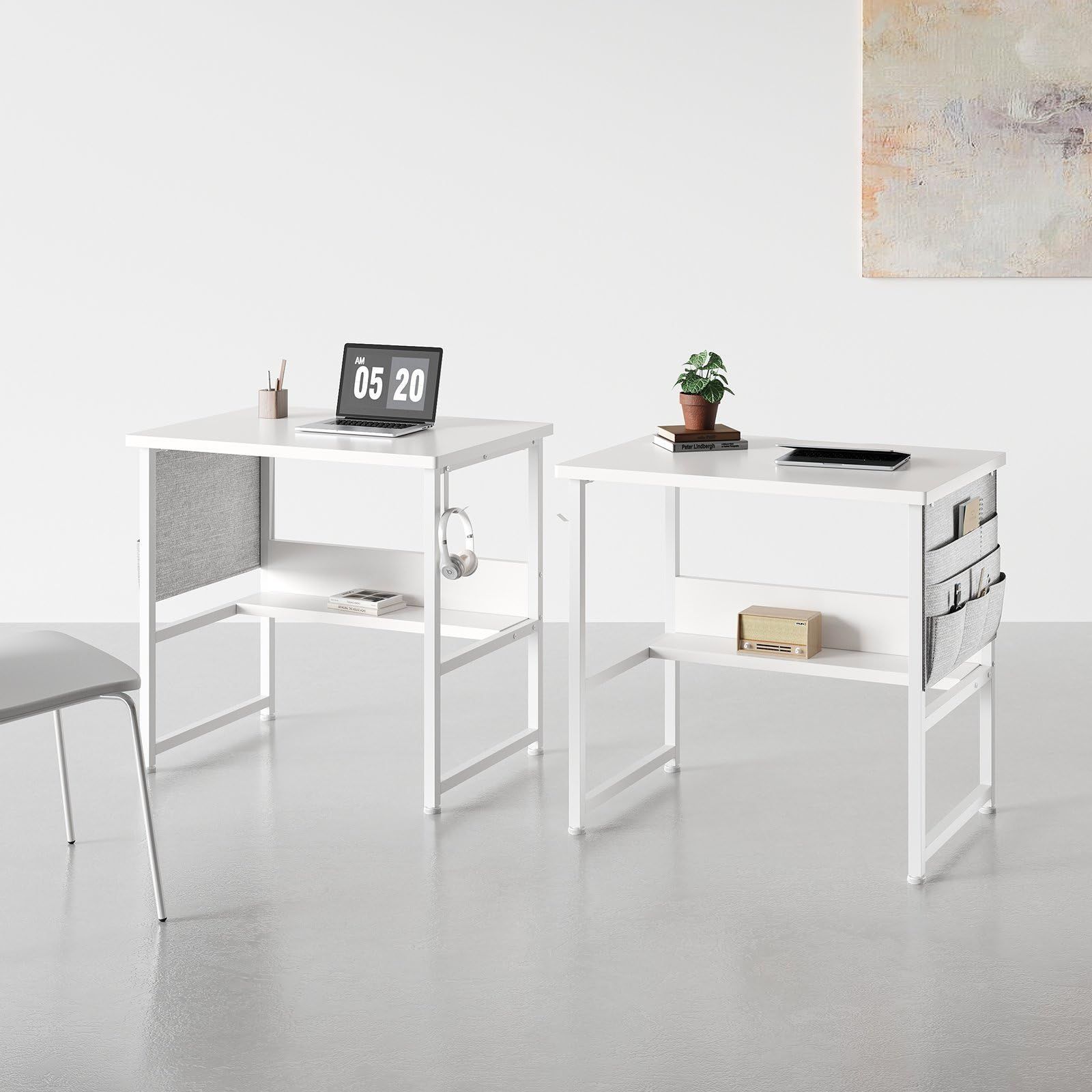 YeTom 机 pcデスク ミニ コンパクト ラック付き パソコンデスク 幅60cm×奥行45cm 収納袋付き 勉強机 下棚付き 学習デスク 学習机 省スペース 在宅ワーク 事務机 白い