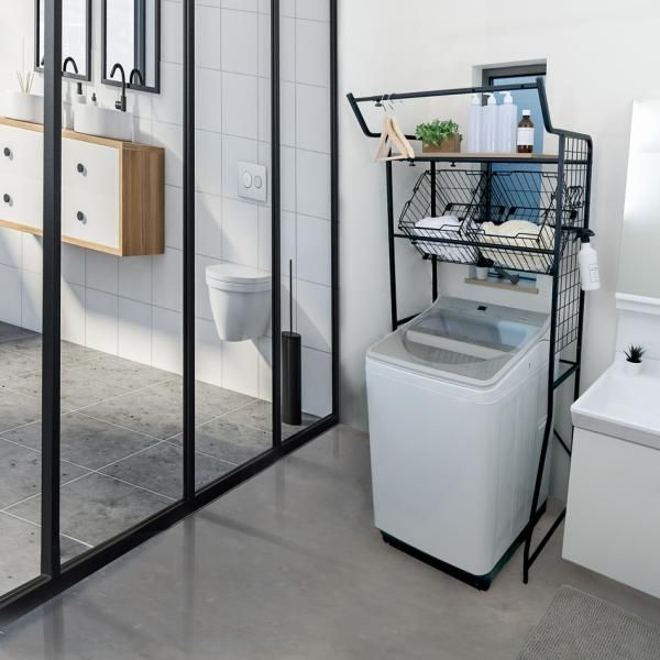 洗濯機ラック 収納 ランドリーラック 洗濯機 収納ラック 洗濯機上 スペース 収納棚 スチール おしゃれ 棚 ハンガー ランドリーバスケット 洗濯かご 洗濯物 szo ldr k