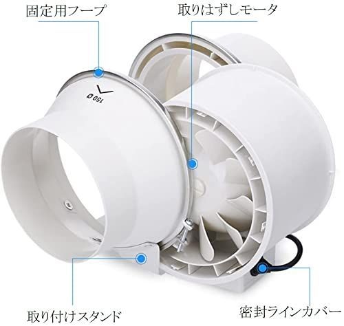 Hon&Guan ダクトファン 150mm 強力 省エネ 静音 【インボイス制度登録店】 ダクト用換気扇 塗装ブース用 家焼肉 中間取付 丸形タイプ 産業用換気扇 (HF-150P)