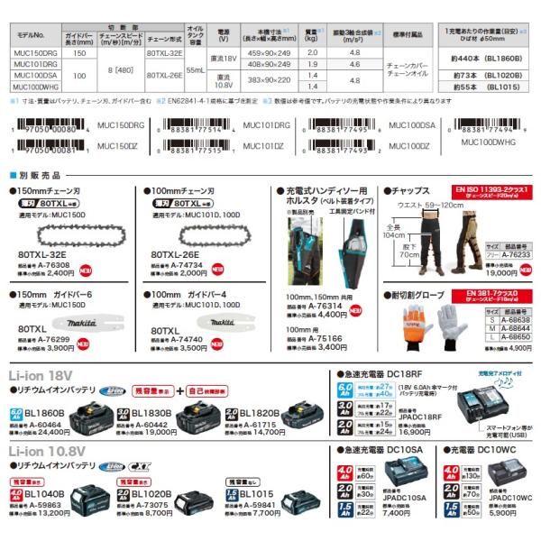 マキタ makita A 76308 充電式 小型 チェーンソー ハンディソー 予備替刃セット ガイドバー150 mm 18 V バッテリー 充電器別売