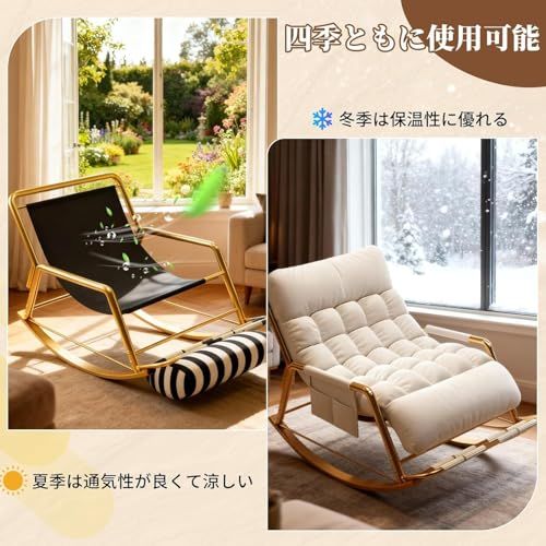 安定性抜群の頑丈フレーム:強化カーボンスチールを使用したフレームは、しっかりとした安定感を実現。ぐらつきが少なく、体重を分散させる構造で耐久性も抜群です。転倒防止設計が施されているため、安心してゆったりロッキングモーションを楽しめます。