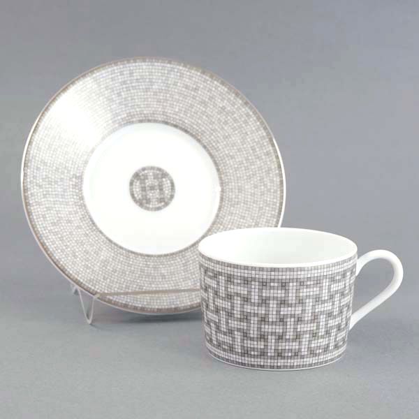 商品名:エルメス HERMES カップ&ソーサー 35016P Mosaique Au 24 Platinum モザイク・ヴァンキャトル プラチナ ティーカップ ペア herm-035016-2p