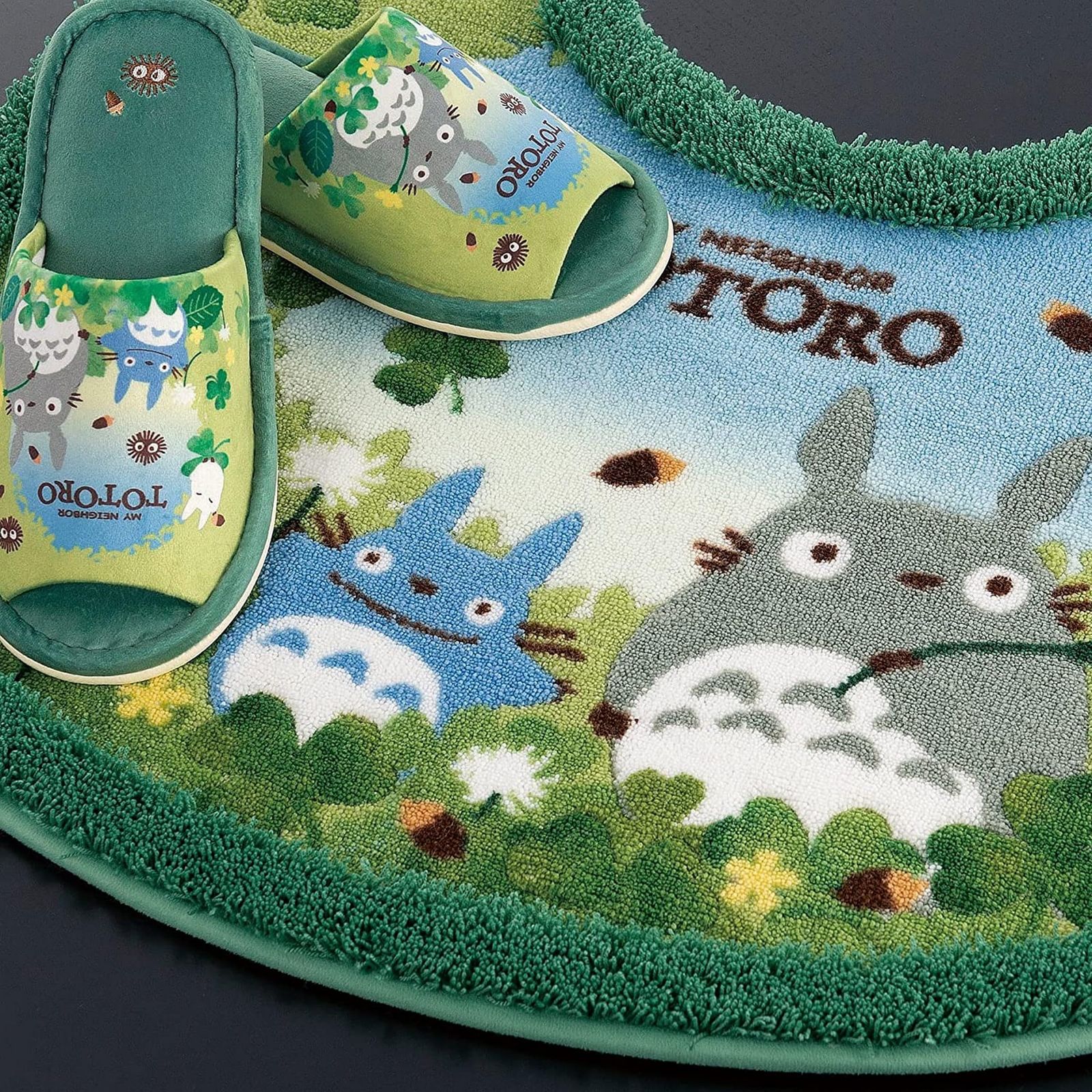 センコー となりのトトロ あおぞらどんぐり グリーン 普通 洗浄兼用ふたカバー トイレマット スリッパ ペーパーホルダーカバー 4点セット