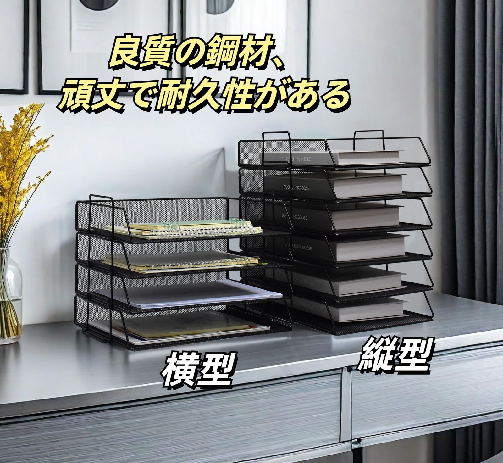 積み重ねて整理可能なA4/B4メッシュトレイです。