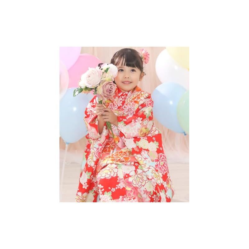 KYOETSU キョウエツ 着物セット 七五三用 3歳用 被布セット 華やかA 9点セット 柄被布 柄着物 伊達衿 長襦袢 髪飾り 巾着 草履 腰紐 足袋 ガールズ 9 花華絢爛 0