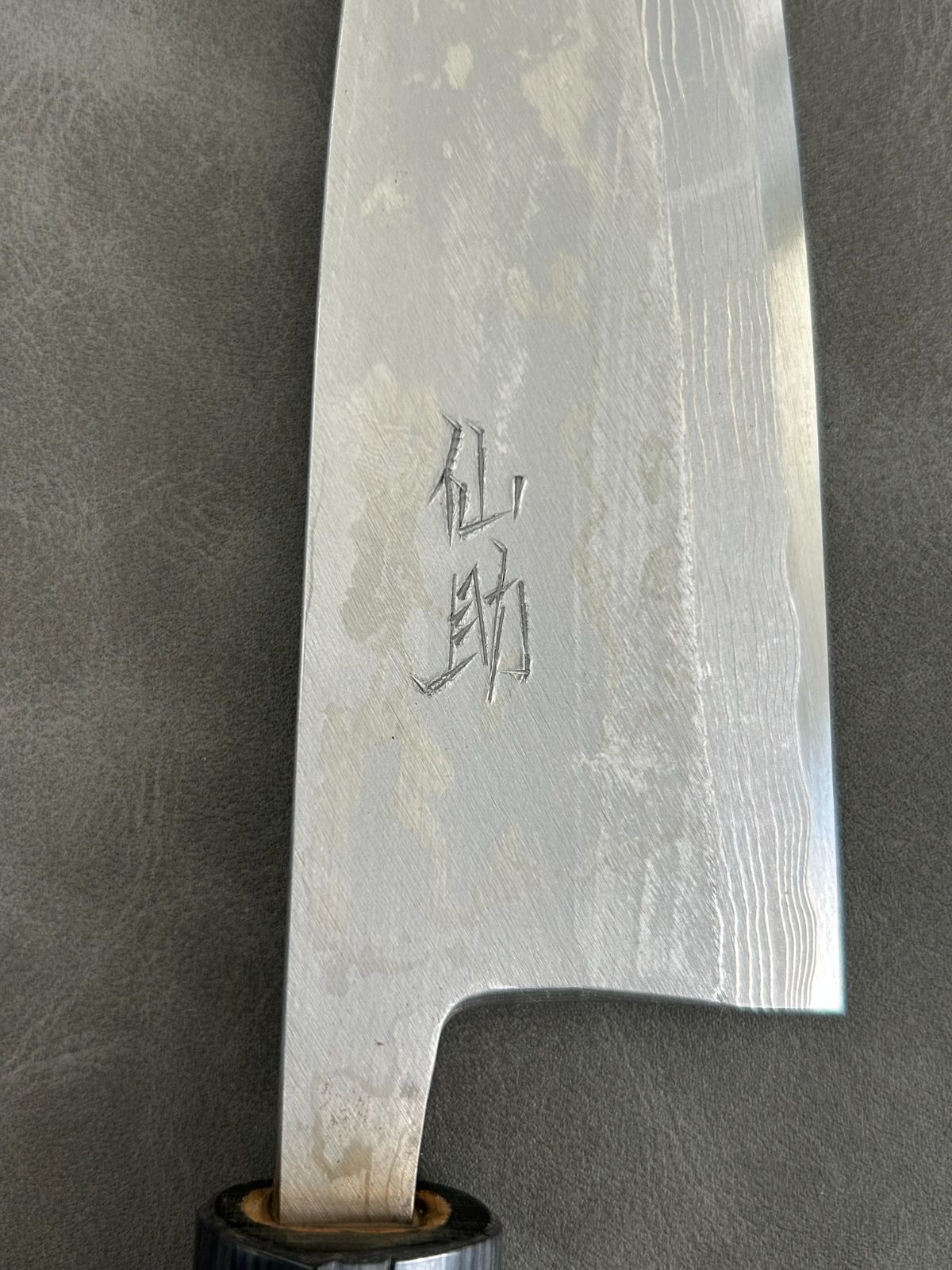 訳あり 仙助 包丁 出刃 ダマスカス 安来鋼青紙2号 165mm 紫檀シノギ柄 54